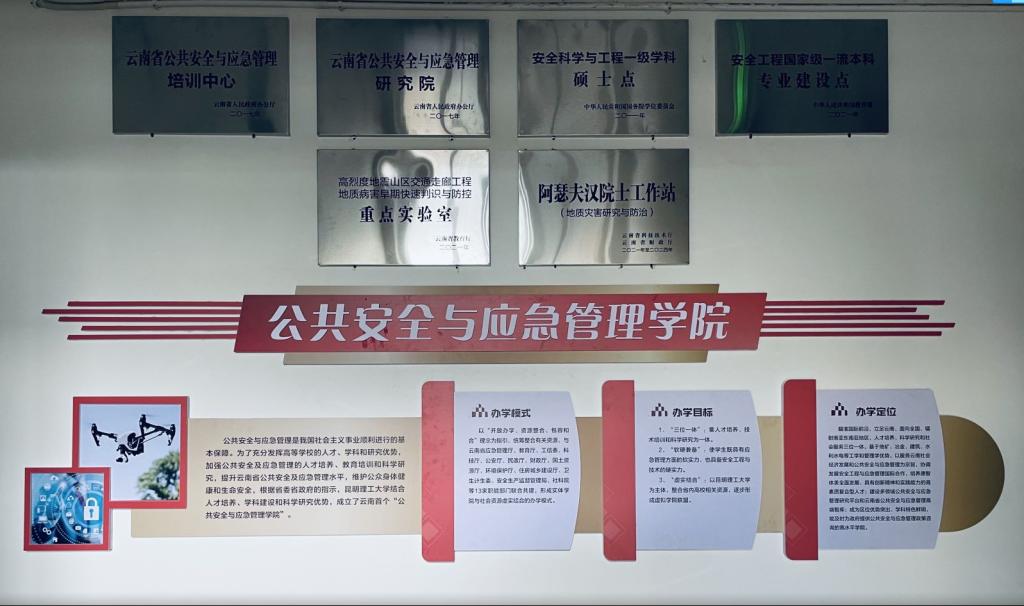 学院立足于灾害风险评估、预警与防控及生态恢复治理等领域的人才培养、科学研究与社会服务,主要有三个方面的学科方向和布局:围绕矿业、土木、交通等相关典型岩土体工程和地下工程,开展矿山灾害监测与防治研究;围绕冶金、化工云南特色产业生产过程中的安全风险,开展冶金生产系统安全风险防控领域研究;针对区域非煤矿山开采、有色金属冶炼过程面临的职业健康防护难题,开展矿冶职业安全健康防护领域研究。学院通过承担国家级、省部级和企业集团委托科技项目,有计划、有目的地开展基础理论研究、技术攻关和培训服务,推动科技成果的转化,在工程灾害风险控制与安全技术、地质灾害机理与防控理论等方面取得了较好的成果,解决了一系列工业灾害安全风险防控实践问题,提升了企业科学技术水平并带来了较大的安全经济效益,实现了专利成果转化,促进了高端人才培养及安全宣传教育的全面推广。相关研究成果得到国内外同行专家的高度认可,且在云南、四川等西部省份及巴基斯坦、孟加拉国等南亚东南亚“一带一路”沿线国家的公路、铁路、隧道、矿山等工程领域得到了广泛应用,解决了灾害辨识、风险评估、预警防治等基础理论与关键技术。此外,学院顺应社会对安全应急管理人才的需求,面向全国各级政府管理部门、企事业单位和生产经营单位的管理干部和技术人员开展公共安全与应急管理方面的培训,在安全文化教育宣传和科普方面取得了较好的社会效益。