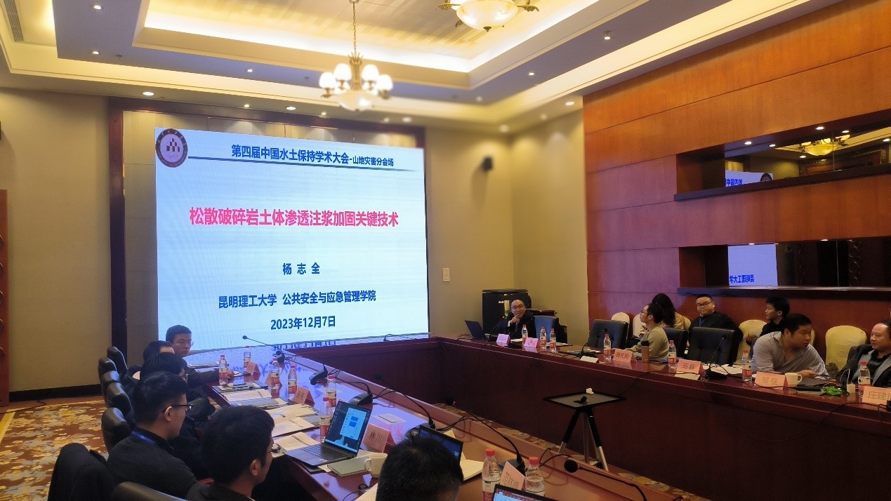 杨志全教授在“山地灾害分会场——山地灾害与智慧减灾”作题为“松散破碎岩土体渗透注浆加固关键技术”的主题报告。在设计“国家和云南省战略层面重大课题”、“关键科学问题和工程技术瓶颈”、“注浆加固理论技术”等方面,从地质灾害防治技术角度进行深入阐述。报告指出,未来地质灾害防治需要与人工智能、深度学习等前沿技术相结合,逐步迈向智慧减灾的目标。此外,杨教授介绍了学校和学院在地质灾害研究方向的建设举措,以及取得的显著成绩,引起了与会者的广泛关注,并得到了同行专家的高度认可,扩大了安全科学与工程专业在国内的影响力。