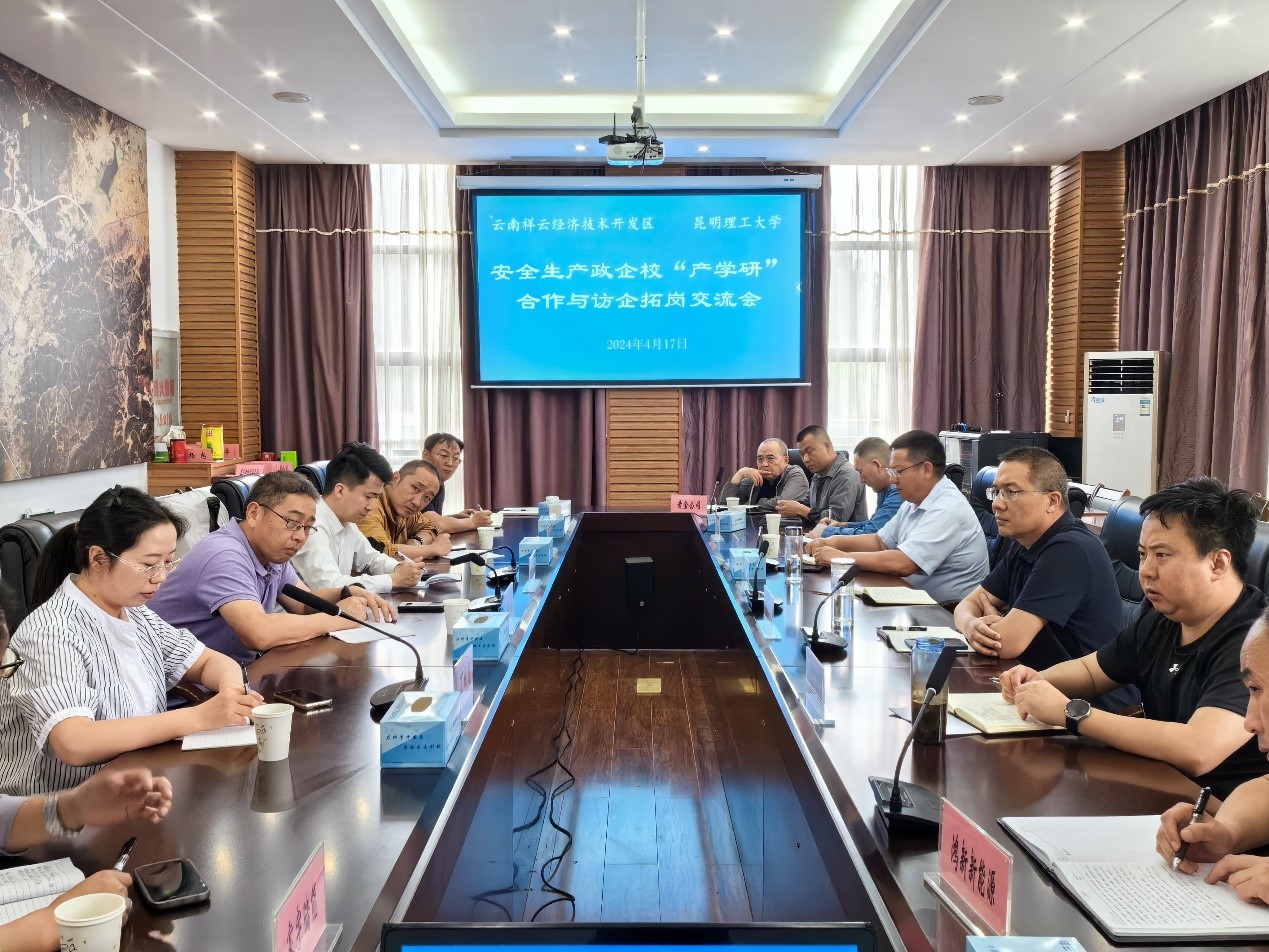 前期合作情况,并期待后续与我院在安全生产科学研究、人才培养等方面有深入合作。赵宗义副主任、谭敏副主任分别详细介绍了祥云经开区管委会的基本概况、企业生产与销售、安全生产等相关情况。