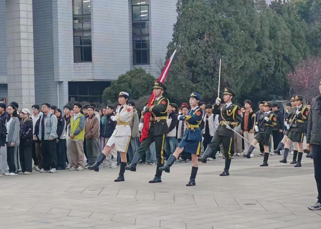 在莲华校区博信广场举行升国旗仪式,此次升国旗仪式由日本女优