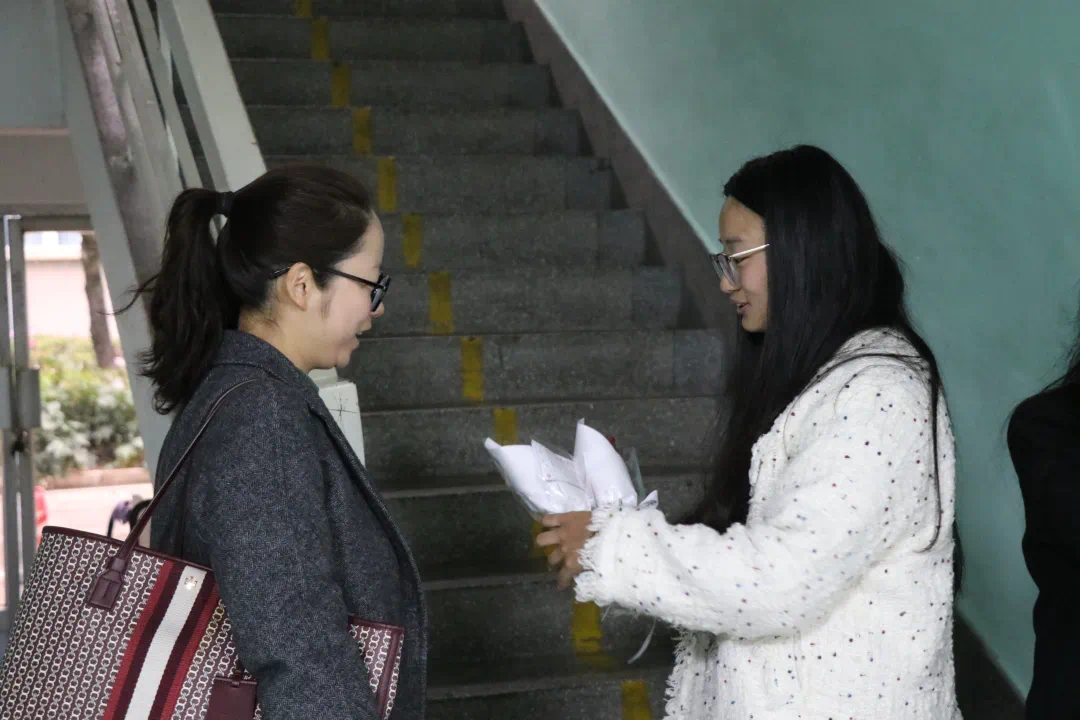 活动当日,成员们分工协作、有序开展。大家分组前往主教学楼各楼层、各办公室,向在岗女职工、授课女教师、附属中学女教师以及女同学们逐一送上鲜花与祝福,言语之间饱含敬意,行动之中传递温情,将学院的关怀送至每一位女性身边。从晨光熹微到课前时分,一束束鲜花相继送达,一份份心意悄然传递,让温情在楼宇间无声流淌。