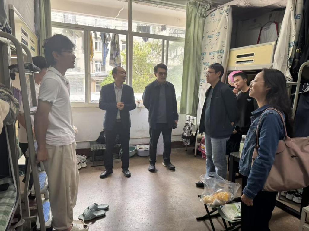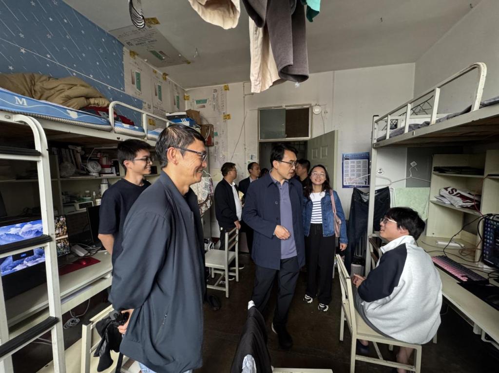 为进一步落实学生安全管理责任,掌握学生在校学习与生活状况,确保全体同学拥有一个安全、整洁、温馨的生活环境。9月30日下午,在国庆节来临之际,学院党委书记左红武、院长李克钢、党委副书记谷敏、副院长杨志全及全体辅导员、班主任深入学生宿舍了解学生情况,听取学生意见建议,并为同学们提供暖心指导和亲切交流。